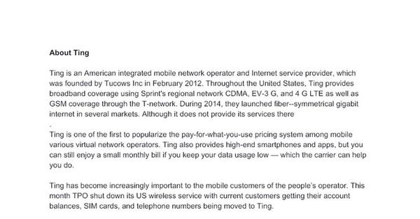 Google Docs • 8th July 2023 About Ting JavaScript isn't enabled in your browser, so this file can't be opened. Enable and reload.